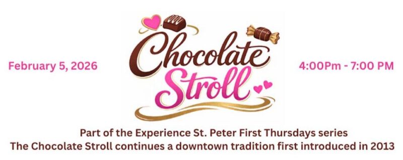 Experience St. Peter invites you to enjoy a Chocolate Stroll, a ticketed Valentine-season experience featuring a small group of downtown businesses who have partnered together to create something special for our community.