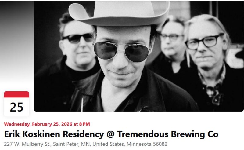 Erik Koskinen is an American singer-songwriter, multi-instrumentalist and producer, whose music is not categorized by sub-genres. Stylistically he is on his own while heavily influenced by American roots music. The rhythmic integrity and musical tone is as important as the lyrical content and the artistic intent. Koskinen has reverently entered the anthology of uniquely crafted wry songs with the likes of Woody Guthrie and Ry Cooder while speaking as plainly as your neighbor. The Minneapolis Star Tribune calls Koskinen “the real deal” and “The best country songwriter in Minnesota”