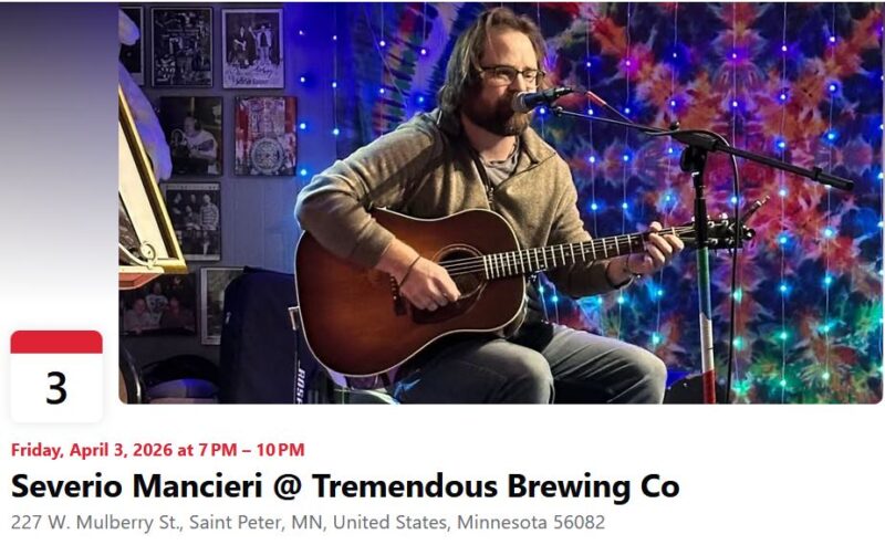Severio Mancieri is a traveling troubadour from Duluth, Minnesota. Currently traveling the country in a minivan. Born 3 months early and only two pounds at birth, he’s been playing piano since 6 and guitar since 10. 175 shows a year, he’s released an EP “Can I”, a music video to accompany it, and a full length album “A Thousand Feet From The Sun”. Hailed as a guitar virtuoso with a resonant voice, this is an artist you won’t want to miss.